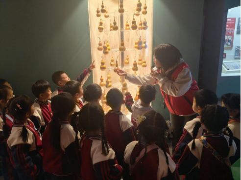 11月28日上午,武汉市上知教育国际儿童学苑50余名师生走进我馆开展了一场深度研学活动。孩子们在博物馆讲解员的引导下直观感受中华文化的多元一体与博大精深,在幼小的心灵中深植下民族团结的种子。