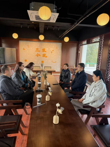 3月6日上午十点,我校音乐舞蹈学院徐其涛书记、华毛措院长一行4人前来我馆洽谈铸牢中华民族共同体意识宣传教育相关合作事宜。我馆李然馆长率林毅红、庾华两位副馆长陪同参观馆内各展厅,参观过程中详细介绍了即将向公众开放的《钟鼓和鸣 共颂中华:铸牢中华民族共同体意识乐器展》以及新开设的“三生小院”文创咖啡研学体验区域,就双方的资源优势和合作意向进行了深度交流。双方在展览开幕仪式活动、展厅体验、教学实践等多个方面合作达成共识,最后品尝了文创咖啡和果饮,并对文创咖啡的环境和产品给予高度评价。