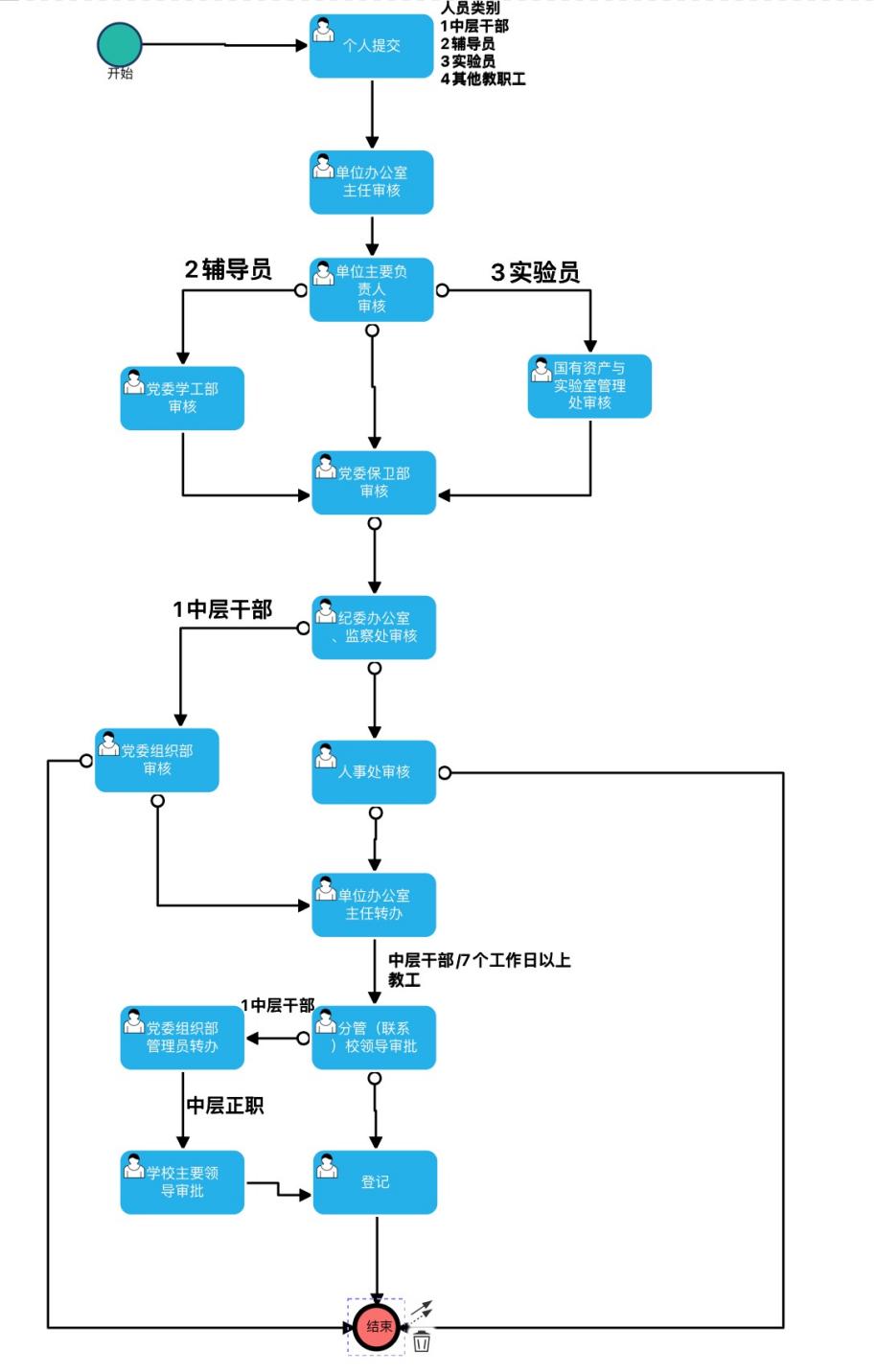 3.点击“申请”选择办理业务类型:(1)因私出国(境)请假;(2)因私出国(境)证照办理(含签证/签注),进入相应页面填写