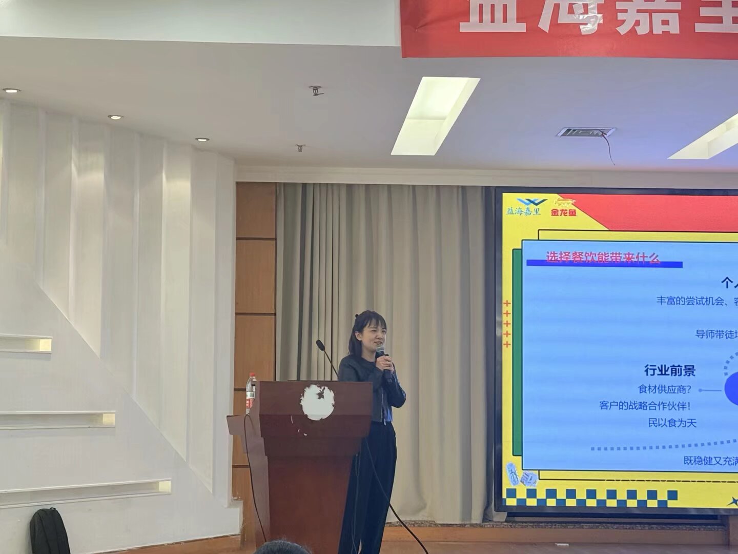 益海嘉里餐饮酒店西餐KA主任佟晨瑶以“学姐”身份,用“三个没想到”分享了她十年职场体验:没想到企业拥有庞大的餐饮生态,没想到营销岗位快速提升个人能力,没想到企业氛围开放、“能者上”的机制助力成长。她详细讲解了了集团“导师带教+培训机制”的培养体系,强调餐饮渠道是稳健且充满活力的发展赛道。