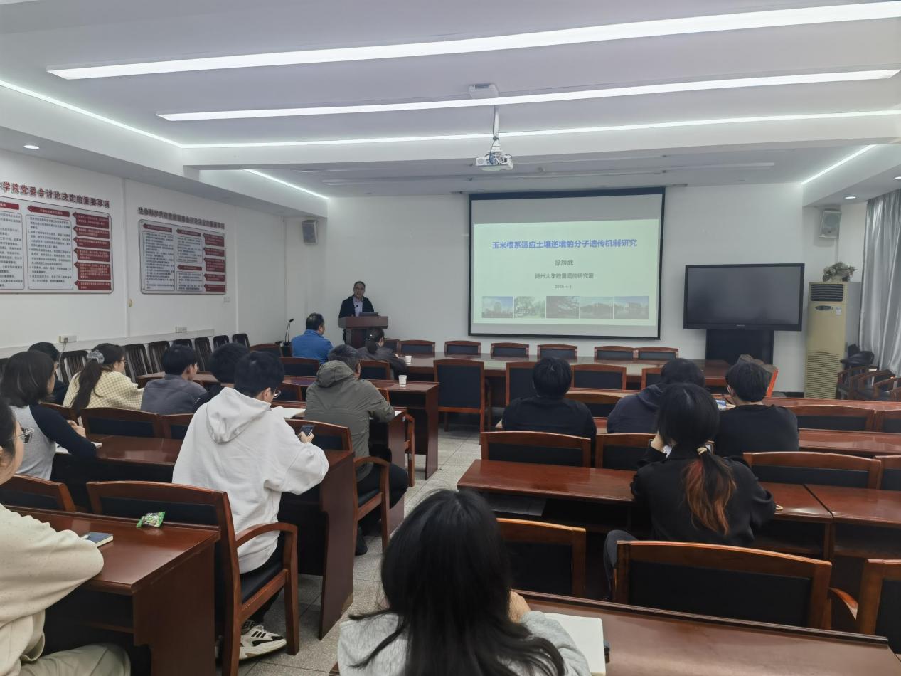 2026年4月1日,扬州大学农学院徐辰武教授受邀作题为《玉米根系适应土壤逆境的分子遗传机制研究》学术报告。