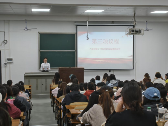 随后,学员代表依次上台发言,分享入党初心与成长感悟。会计实验2401班金靓琪作为入党积极分子代表,以校训“笃信好学,自然宽和”为切入点,表达了主动向党组织靠拢、锤炼过硬本领、勇担时代使命的坚定决心;信管实验2301班张含森作为发展对象代表,围绕践行“三个模范担当”,从政治素养锤炼、专业知识学习、社会实践参与三个方面,阐述了自身对党员标准的理解与践行路径;财务管理2202班邓黄枫作为预备党员代表,深入解读中华民族共同体意识的丰富内涵,并庄严承诺将以更高标准严格要求自己,发挥先锋模范作用,不负党组织的培养与期望。三位代表的发言情真意切、掷地有声,赢得现场阵阵热烈掌声。