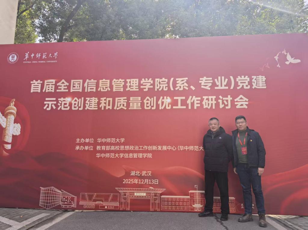 2025年12月13日,管理学院党委书记闻亮同志与管理科学与工程系党支部书记毕达宇同志赴华中师范大学参加首届全国信息管理学院(系、专业)党建示范创建和质量创优工作研讨会。会议由华中师范大学主办,教育部高校思想政治工作创新发展中心(华中师范大学),华中师范大学信息管理学院承办。