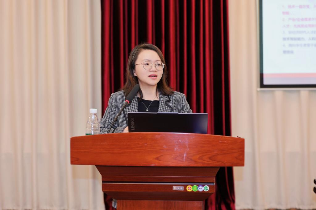 随后,新道科技助理总裁眭召强作了《“人工智能+”数智赋能财经专业建设》的主题分享。他指出,随着企业财务数智化转型加速,AI技术正深度重塑财经教育生态,院校需构建“产业需求-教学创新-AI赋能”协同教改新范式,培养具备财商、数商、业商、创商复合能力的数智新财经人才。