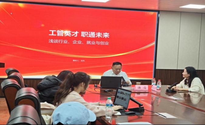 系列活动的收官之场于12月7日举办,聚雅科技总经理汤亮先生应邀分享。他通过分析就业市场与薪酬趋势,系统比较了国企、民企、外企的不同特点,建议同学们开阔视野,关注产业链优质环节。在就业与创业方面,汤亮强调扎实的专业知识、积极的职业心态与审慎的创业准备,为同学们的长期发展规划提供了理性而富有建设性的建议。
