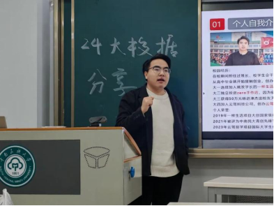 2018级电子商务专业的创业者贺福利则分享了自己跌宕起伏的创业历程。高中毕业后,他便开启创业探索,从“新心教育”项目赚取第一桶金,期间经历过实体店亏损15万元的挫折,后凭借优质项目获得50万元天使投资,创立的“云驾易学车”品牌年营收已超300万元。他强调,“真创业”的核心是为用户创造价值,创业者需具备强大的执行力、抗挫力与持续学习力。对于有创业意愿的同学,他建议先加入优秀创业团队积累经验,从小项目起步,同时要清晰区分竞赛项目与真实创业的本质差异,脚踏实地逐步推进。