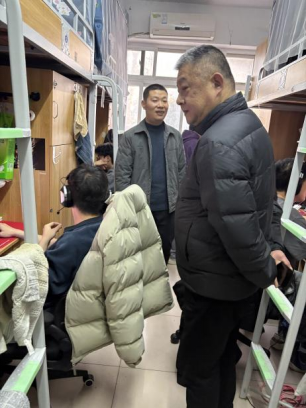 学院领导班子赴一线督查本科生宿舍情况,闻亮王重阳走进23栋男生宿舍,与宿舍长交流宿舍管理要点,详细了解日常值守、隐患排查、应急处置等工作开展情况,实地排查安全隐患;翟华云与周运兰分别前往22栋、26栋女生宿舍,与宿舍长并肩巡查寝室,仔细查看宿舍安全状况与内务整理情况,叮嘱宿管人员要持续做好宿舍安全值守与日常巡查,共同守护学生住宿安全。