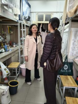 (周运兰(左一)走访22栋学生宿舍  柏舒庭摄