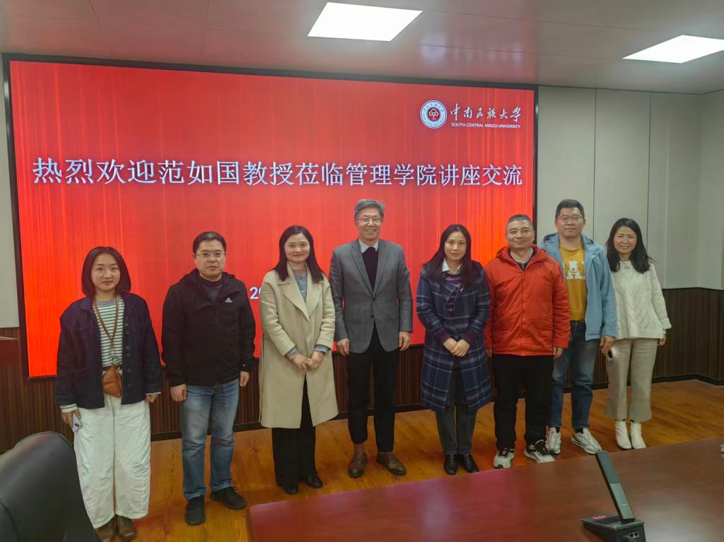 2025年11月27日下午3:00,我院“新文科・新管理・新融合”系列学术讲座第二十四期在管理学院206会议室成功举办。本期讲座特邀武汉大学二级教授、博士生导师范如国莅临,带来题为“从静态均衡到动态跃迁:数字时代的边际报酬理论”的专题分享。讲座由管理学院院长翟华云主持,学院教师、研究生积极参与,现场学术氛围浓厚。