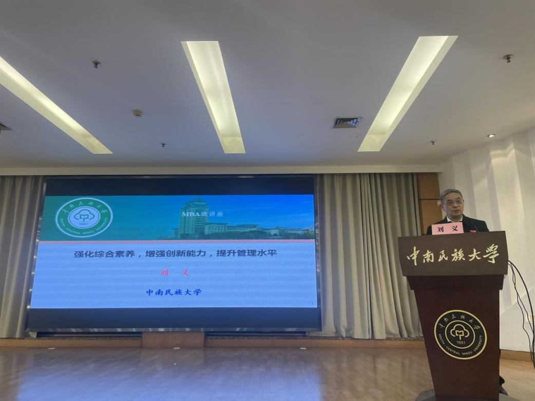 2025年12月20日上午,系列讲座在学术交流中心润良报告厅举行。学校党委副书记、校长刘义教授应邀作题为《强化综合素养,增强创新能力,提升管理水平》的报告。讲座由管理学院院长翟华云主持,学院研究生及教师代表参加。