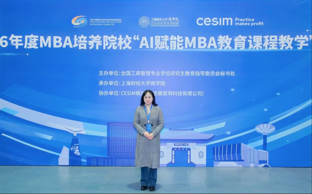 3月18日,由全国工商管理专业学位研究生教育指导委员会秘书处主办、上海财经大学承办的2026年度MBA培养院校“AI赋能MBA教育课程教学”研讨会在上海举行,管理学院MBA分中心常务副主任毛忞歆老师代表学院出席本次活动,与全国近百所MBA培养院校的专家学者、院校领导及一线教师共同研讨数智时代MBA教育的创新发展路径。