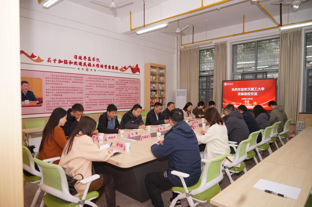 12月4日,武汉理工大学党委学生工作部部长谢中清率队来我校调研交流。党委学工部部长杨涛,副部长刘君强,学工部相关科室负责人及辅导员代表参加活动。双方在“一站式”学生社区总站“铸魂育人”工作站展开交流。
