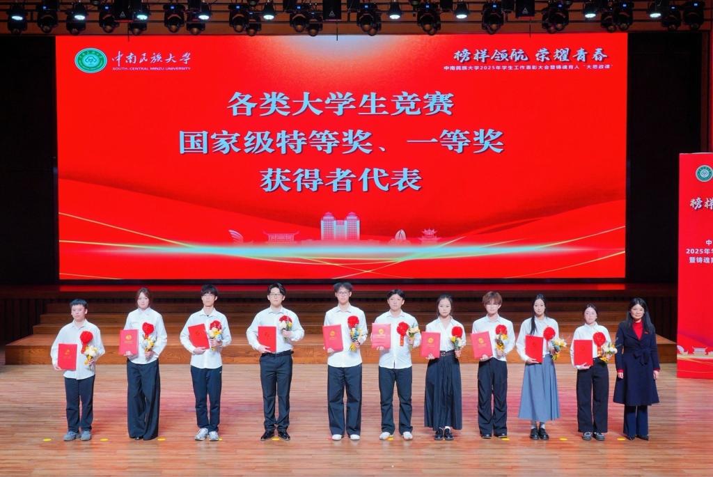 1月16日,学校举行2025年学生工作表彰大会暨铸魂育人“大思政课”。校领导徐业勤、刘义、李红燕、覃瑞、马玉堂,校党委常委蔡琼、各相关单位负责人、全体辅导员及获奖师生代表参会。