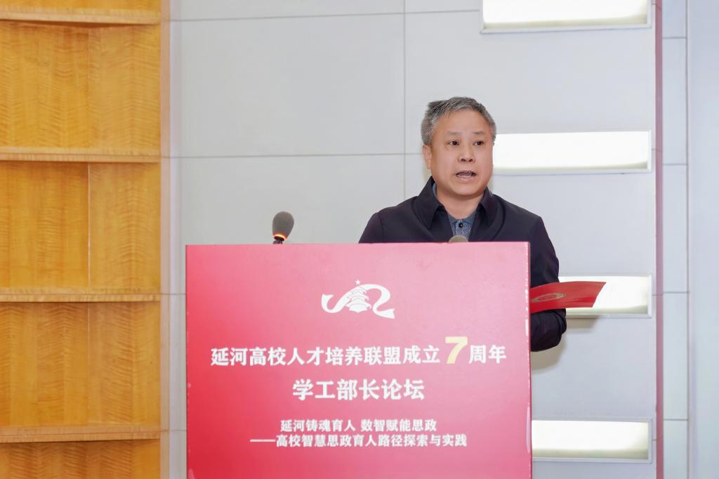 3月16日下午,延河高校人才培养联盟成立7周年学工部长论坛在我校举行。此次论坛以“延河铸魂育人 数智赋能思政——高校智慧思政育人路径探索与实践”为主题,旨在传承延安精神、赓续红色血脉,回应数字时代思政工作的创新发展命题。湖北省教育厅思政处处长张彦昌,我校党委常委、副校长马玉堂,延河联盟各高校学工部(处)负责人,我校相关部门负责人、各学院学生工作负责人、辅导员骨干参加会议。
