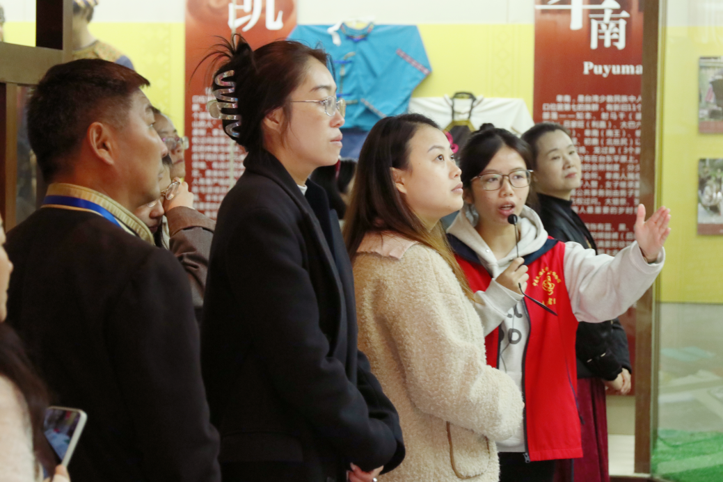 图为讲解员为考察团讲解民族文化 向巴央宗 摄