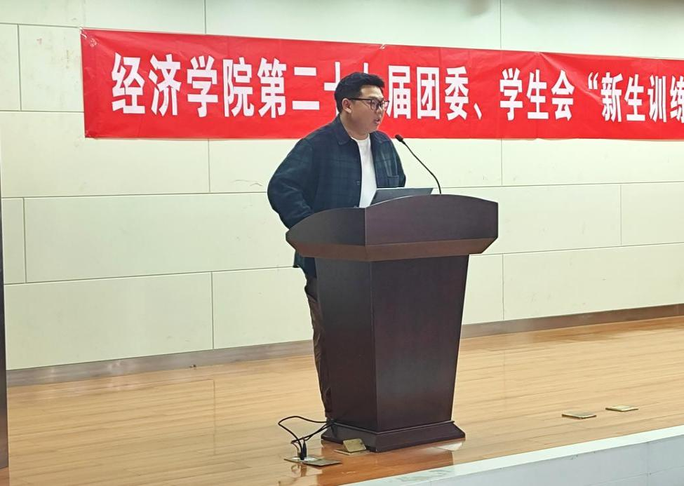 为强化团委、学生会干部队伍凝聚力,助力新生骨干快速适应组织工作节奏,10月28日中午,经济学院于16号教学楼二楼报告厅举办第二十九届团委、学生会“新生训练营”开营仪式。经济学院党委副书记安树庭、团委副书记李恩朴、2025级辅导员张竹云、赵驰及第二十九届团委、学生会全体成员出席会议。会议由院学生会主席团成员吴馨月主持。