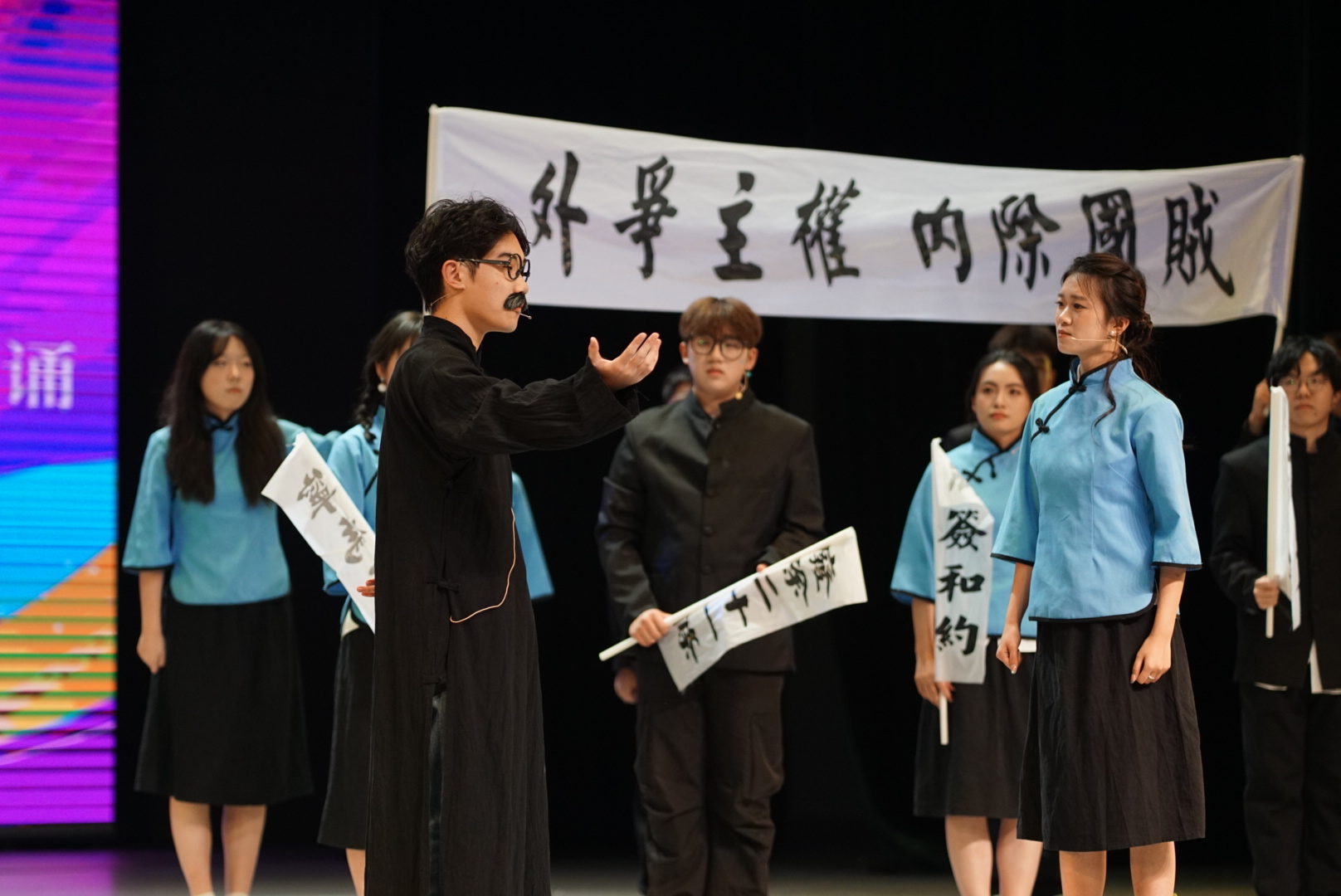 觉醒年代的星火、建设年代的奋斗、新时代的接力——朗诵与情景交织,激荡跨越百年的精神共鸣,既是对先驱的致敬,也是对青春担当的回应。