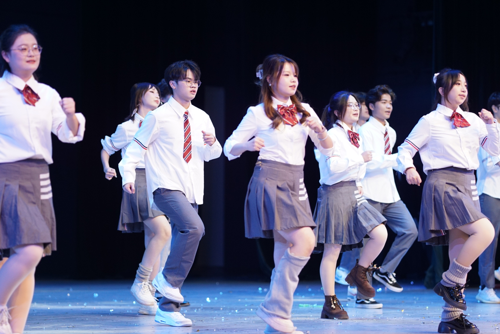 熟悉旋律缓缓流淌,声乐组默契和声传递青春温馨与新年喜悦,瞬间点燃现场氛围,为晚会拉开活力序幕。