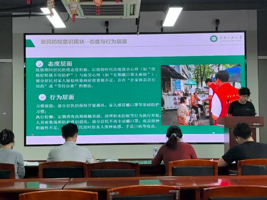 其中,卓越 2301 班周郡宇代表的 “地表最强团队”,聚焦后疫情时代社区传染病防控,深入武汉市江汉区北湖街道环保社区调研,通过线上问卷、错峰访谈、参与式体验等方式,厘清居民防控意识与社区防疫实践落差,探索老旧社区常态化防疫路径,既为防疫提供数据与方案,也拓展成员公共卫生思维与社区治理视角。周郡宇凭借清晰逻辑与出色表达获评委认可,斩获一等奖。