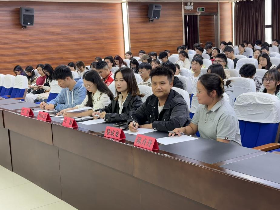 (文/陶薪宇,图/王浩然、郭昊东)为进一步凝聚新生力量,夯实学生组织服务根基,助力2025级新生干事快速融入集体,我院于10月13日中午在16栋二楼报告厅召开了院团委学生会2025级干事见面会。院团委书记叶颖,院团委副书记魏邱霞,辅导员柴成龙、陈卉丹、郭骁,院团委学生会全体老生骨干和2025级全体新生干事共同参会。会议由2024级阮诗涵主持。