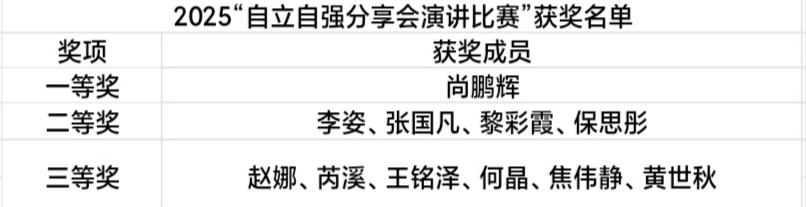 经评审,此次分享会选出院级一等奖1名,二等奖4名,三等奖6名。获奖名单如下:
