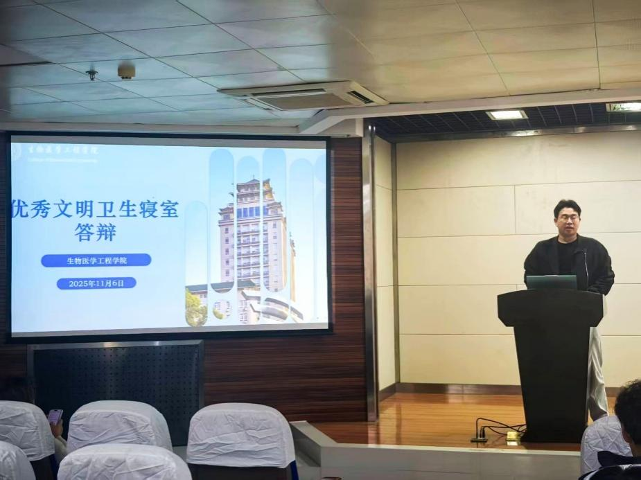 (文/姜学,图/杨晓楠)为培养学院学生良好的生活习惯,保持宿舍卫生环境,提高学生的综合素质,展现当代大学生积极向上的精神面貌,我院于2025年11月6日中午,在16栋2楼报告厅举行2025年生物医学工程学院秋季“优秀文明卫生寝室”答辩。辅导员柴成龙、陈卉丹,兼职辅导员王东、杜思睿以及学生代表2022级本科生曹书妍出席并担任评委,活动由2024级本科生谈艺主持。