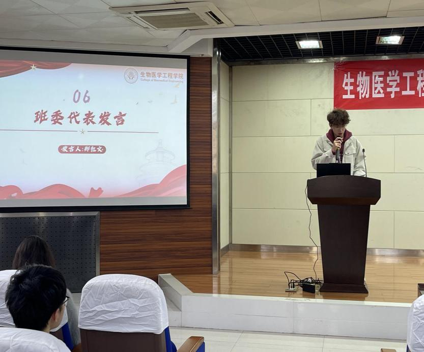 新生班委代表郑凯文在发言中表示,班委是班级建设的“设计师”和凝聚同学的“粘合剂”,岗位光荣,责任在肩。他代表全体新生班委承诺,将以“道阻且长,行则将至”自勉,积极投入学习与实践,不辜负师长的期望与同学的信任。