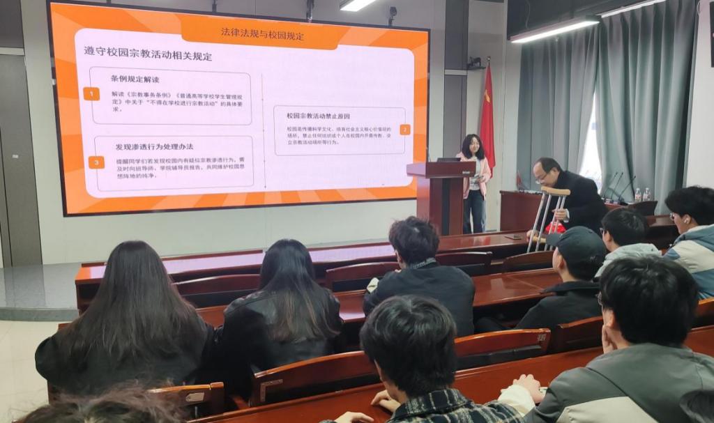生医2201班班会上,班导师谢勤岚鼓励同学们明确学习目标,并通过搭建小组交流平台,强化自主与协作意识,营造勤学好问的班级学风,共同实现考研上岸的目标。谢老师还为同学们解读了马克思主义宗教观,再次强调了有关注意事项。