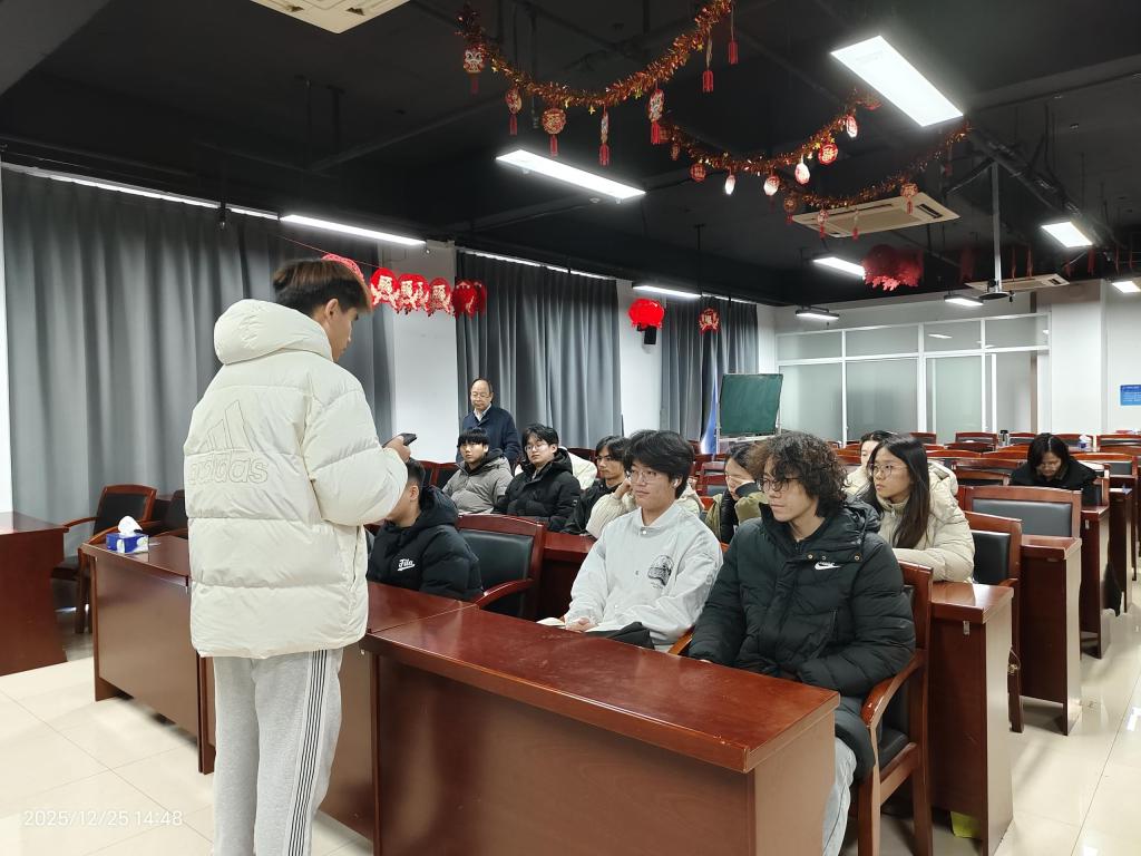 生医类2504班班导师张朱珊莹围绕期末考试与安全防护重点强调:一是认真备考,明确学生的主要任务,并抓住期末周的复习机会;二是诚信参考,杜绝一系列作弊行为;三是节假日注意人身安全,规避各类危险事件。