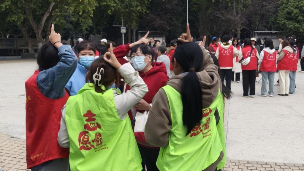 互动环节将活动推向高潮:志愿者与听障朋友围圈开展“你画我猜”静音游戏。听障伙伴打出手势,志愿者凝神拆解“指尖密码”;志愿者则用灵动手势、夸张动作表达题意,现场笑语盈盈。掌声与拇指点赞不断,无声交流胜过有声,秋日旺山公园被指尖欢乐点亮。