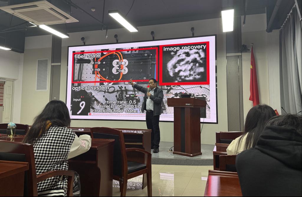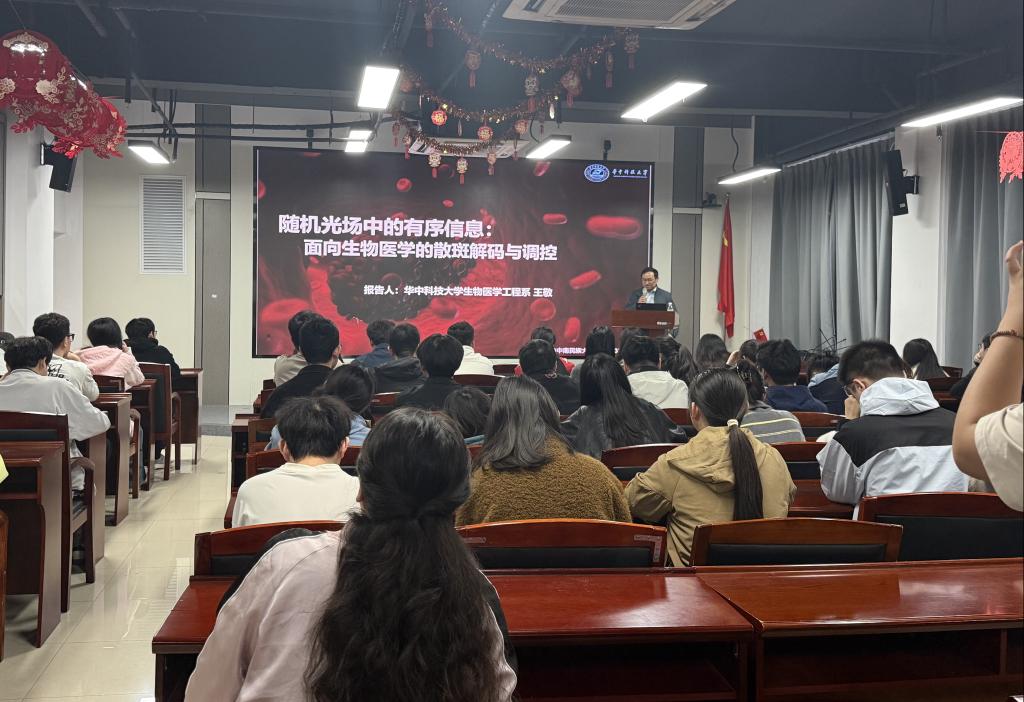 (文/何庆 图/陈卉丹)2025年11月14日下午,我院在16号教学楼713会议室举办“耕耘金秋”学术报告会,特邀华中科技大学王敬教授作题为《随机光场中的有序信息:面向生物医学的激光散斑解码与调控》的学术报告。此次讲座由院长阳小飞教授主持,部分导师和2024级、2025级研究生参加。