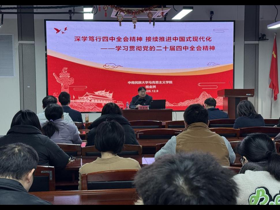 (文/何淑怡、彭思玉,图/彭思玉)为深入学习贯彻党的二十届四中全会精神,切实把全院师生的思想和行动统一到党中央决策部署上来,12 月 9 日上午,学院于16号教学楼713会议室开展党的二十届四中全会精神宣讲报告会。学校党的二十届四中全会精神宣讲团成员、马克思主义学院杨金洲教授受邀做宣讲报告,学院全体教师、学生党员代表参加报告会,会议由学院党委书记桂孙来主持。