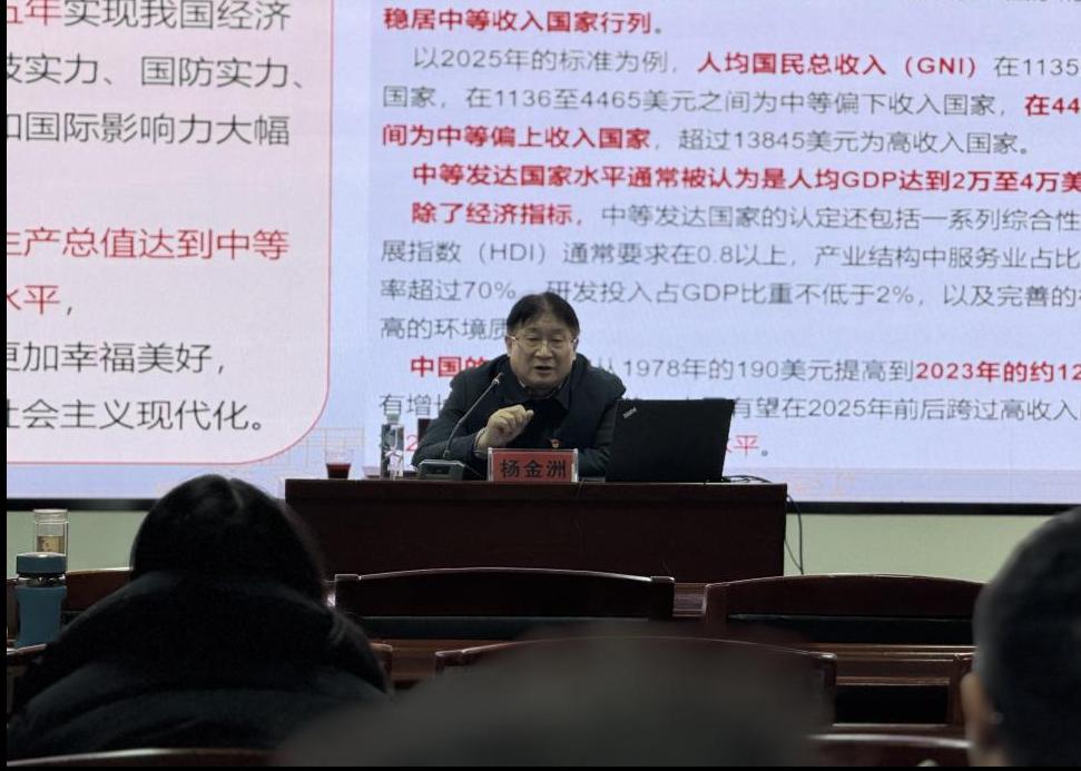 图为杨金洲老师宣讲党的二十届四中全会精神