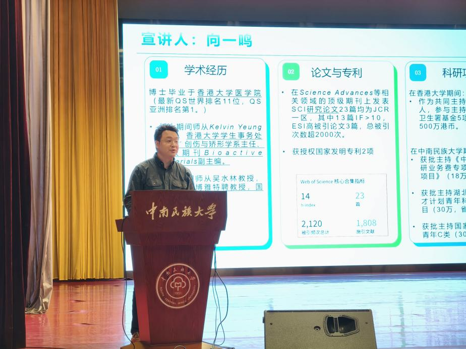 向一鸣老师为生物材料与组织工程试验班开展专业宣讲。他结合自身十余年成长生活经历,分享了平衡学术成长与学生工作的经验,鼓励同学们相信自身能力、兼顾学业与综合素质发展。宣讲围绕行业背景、专业核心、发展前景、培养方案四大维度,结合人口老龄化带来的医疗需求,系统介绍了学科内涵、临床应用与前沿技术,详细解读了试验班培养体系、升学就业路径及报名要求,为同学们明晰了专业选择与发展方向。