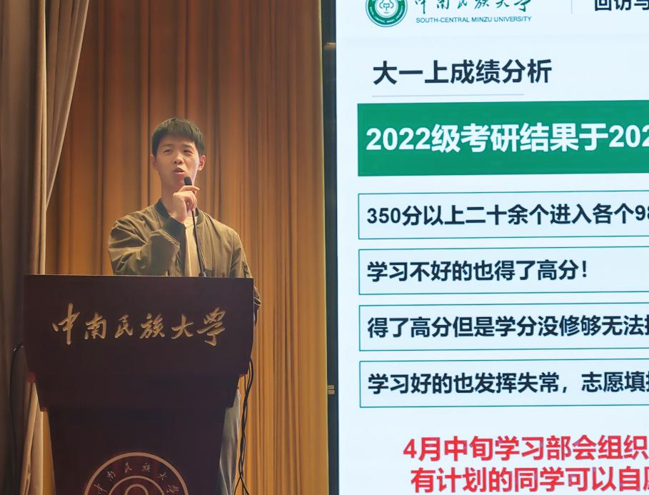 会议伊始,郭骁老师围绕学业导航、未来规划、安全纪律等方面,对年级相关工作进行全面部署。学业上,通报了大一上学期成绩,明确学分预警与升学规划,预告4月中旬将开展考研经验分享会,并强调四六级等证书的重要性;安全纪律方面,重点强调心理健康、人身安全及考勤管理要求;同时就专业分流后的寝室分配安排与时间节点进行说明,为同学们后续学习生活明确了方向与规范。