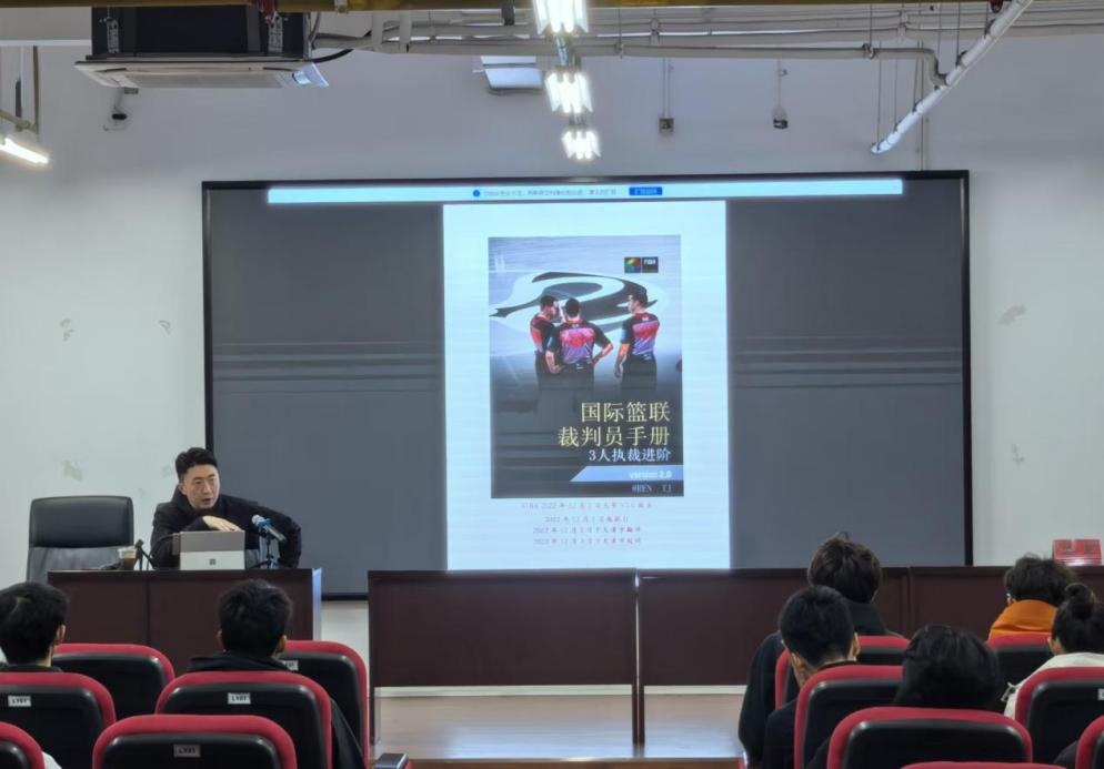 3月21日,篮球国家级裁判员陈龙、饶威老师先后为二级篮球裁判员培训班学员授课。陈龙老师结合视频案例详解篮球规则,饶威老师系统讲解小篮球、三人篮球规则、裁判法、记录台职责及执裁理念,并答疑解惑。