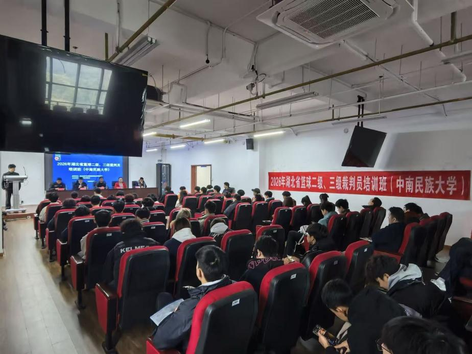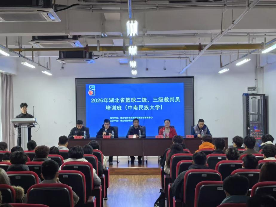 为进一步加强中南民族大学篮球裁判员队伍建设,提升年轻裁判员的业务水平与执裁能力,2026年湖北省篮球二、三级裁判员培训班,于3月21日至3月22日在我校顺利举办并圆满收官。本次培训由湖北省篮球协会与中南民族体育学院联合主办,由中南民族大学篮球协会协办。培训内容包括篮球规则、3×3篮球规则、小篮球规则、裁判法、记录台职责、裁判基本功、执裁理念与原则等,并开展理论、临场、莱格尔体能测试及基本功考核。