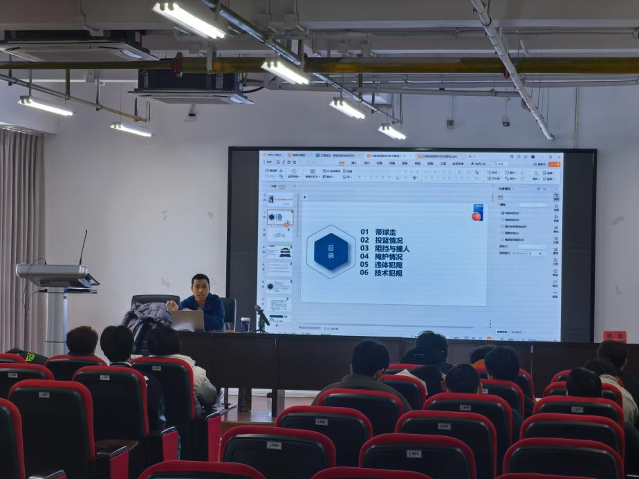 下午,丁文老师围绕裁判法、记录台职责、裁判基本功与行为规范开展实操教学。随后学校组织基本功、行为规范及理论考试,检验学习成效。