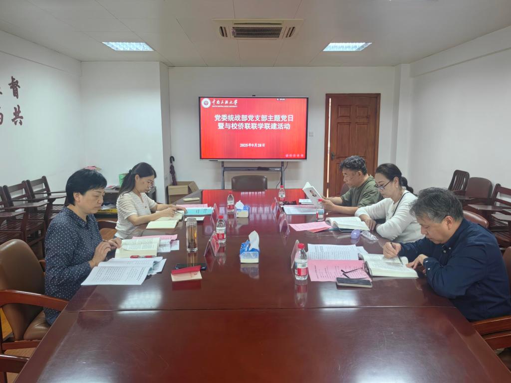 9月28日下午,党委统战部党支部组织召开9月份主题党日暨与校侨联联学联建活动,党委统战部党支部党员、校侨联班子参加会议。会议由党委常委、统战部党支部书记蔡琼主持。