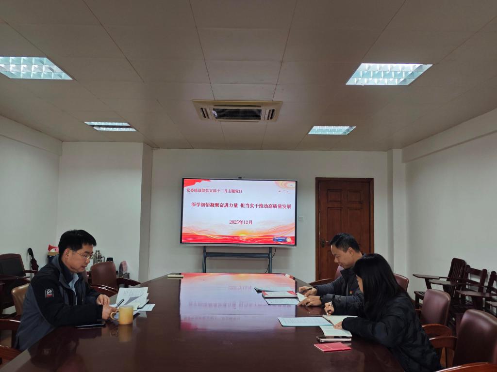 12月29日,党委统战部党支部开展“深学细悟凝聚奋进力量,担当实干做好各项工作”主题党日活动。活动由党支部书记汤振华主持,支部全体党员参加。