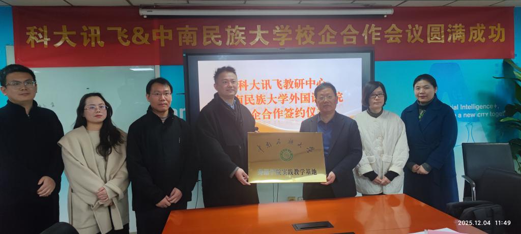 科大讯飞教研中心张扬总监详细介绍了公司在语言智能领域的技术优势和市场应用情况,双方就科学研究、专业建设、共建实习实训基地等合作方向进行了深入探讨。学院与科大讯飞正式签署校企合作协议,约定在人才培养、科研创新、实习实训等方面开展全方位合作,共同打造"人工智能+"特色人才培养模式。调研组还参观了公司人工智能展厅,深入了解公司在多语种翻译、智能语音技术、语言处理等领域的创新成果。