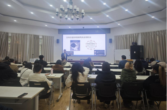 管理学院一步之“尧”工作室田尧老师深入剖析了当前应届毕业生面临的内卷困境,引发在场学子共鸣。田尧从出国境留学视角出发,系统指导学生如何科学规划大学四年,并介绍了一步之“尧”工作室的出国境公益咨询服务内容,整场分享干货满满。此次活动既为拟出国境学生提供了权威资讯支持,也为就业指导教师搭建了经验交流平台,进一步完善了学校就业指导服务体系。