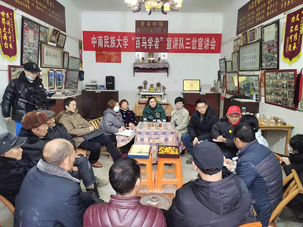 为帮助基层群众更好学习领会党的十九届五中全会精神,持续营造浓厚氛围,根据中共湖北省委宣传部、省委讲师团的统一部署,12月4-5日,“百马学者宣讲行动”中南民族大学宣讲队走进恩施,面向干部群众开展《习近平谈治国理政》第三卷和党的十九届五中全会精神的专题宣讲,让党的创新理论 “飞入寻常百姓家”。