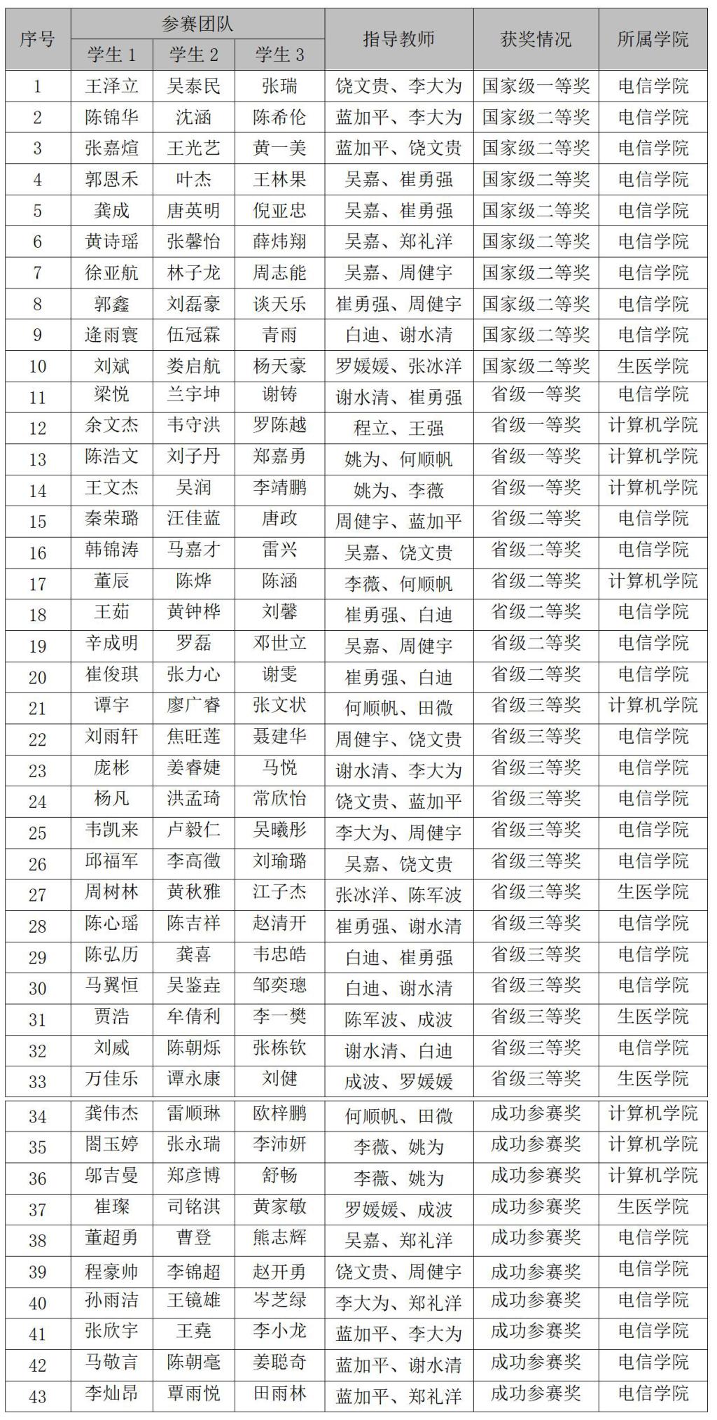 2025年全国大学生电子设计竞赛我校学生获奖信息表