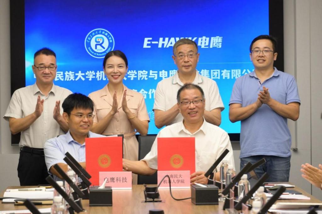 刘义对湖北省科技投资集团有限公司、东湖高新区科创局、东湖高新区社工部、湖北省数字技术和实验发展协会、湖北人形机器人创新中心有限公司、湖北电鹰科技有限公司及各支持单位表示感谢。他指出,面对新一轮科技革命和产业变革,学校近年来成立机器人学院、人工智能学院,并与多家知名企业共建创新实验班、产业实验班、研究生工作站,联合培养卓越工程师。他表示,学校将聚焦人形机器人、人工智能、低空经济等前沿领域,与合作企业共建产业人才研学基地、干部新质生产力素养培养基地和校企联合实验室,协同推进关键技术研发与边疆民族地区场景应用,深化教育链、人才链与产业链、创新链有机衔接,着力打造立足光谷、服务湖北、辐射全国的产学研协同创新高地。