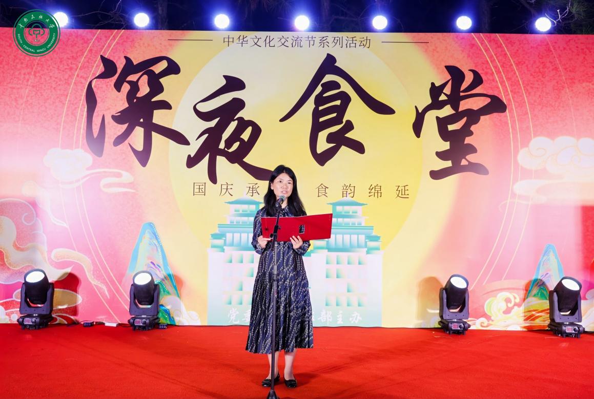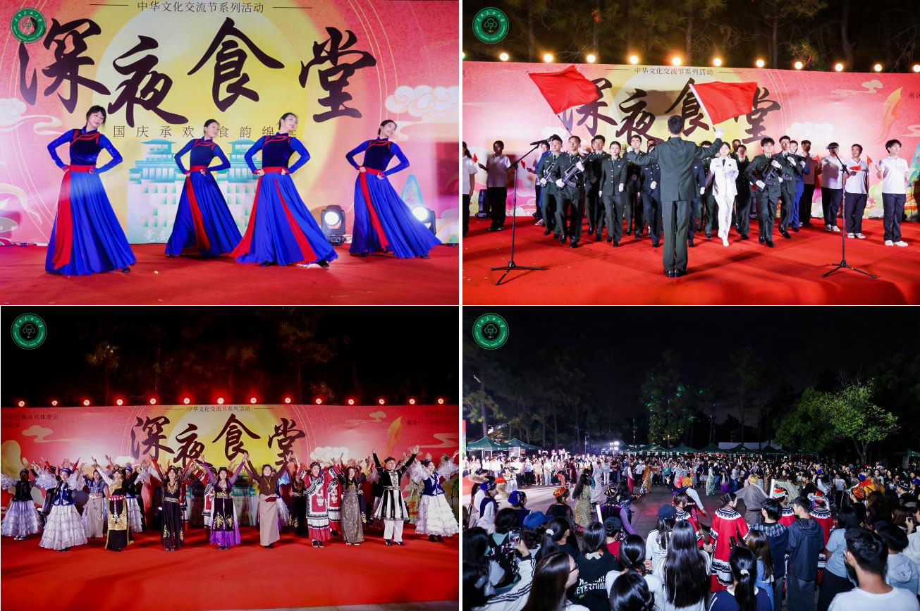 10月11日晚,由党委学工部主办、铸牢中华民族共同体意识学生训练营承办的中华文化交流节之“国庆承欢,食韵绵延”深夜食堂活动在一、二食堂间广场举行,受到众多学生的欢迎与好评。活动由党委学工部部长杨涛主持。