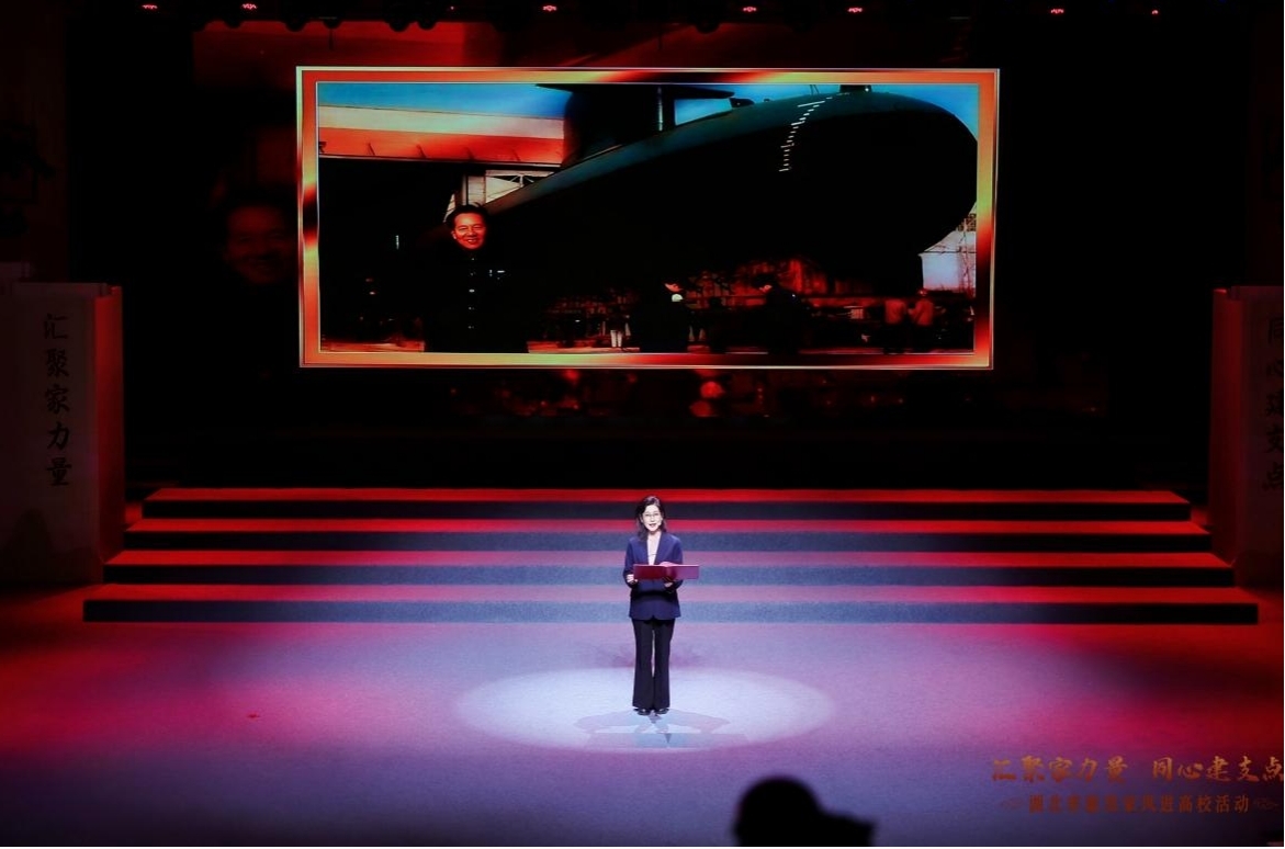 活动现场,饱含深情的家风宣讲,让在场师生深受触动。我校学子的红色家书诵读,带领观众感受力透纸背的信仰、重温革命岁月里的家国担当;黄冈市巾帼宣讲员曾婷讲述的中共一大代表陈潭秋烈士与长子陈鹄跨越时空的家书故事,家书纸短、家国情长,诠释了红色家风的精神传承;“共和国勋章”获得者黄旭华院士的女儿——武汉广播电视台编导黄峻女士,深情追忆父亲“隐姓埋名三十载,许身报国铸重器”的家国情怀;中国地质大学(武汉)教授陈刚分享了父子携手攀登珠峰、将“坚韧不拔、永不言弃”的家风传递下去、将沉甸甸的测绘钻研精神化为日常家风家教的点滴感人故事;华中科技大学同济医学院附属协和医院教授朱良如,讲述了医学世家三代人传承“医者仁心”“大医精诚”的最美家风故事;我校石榴籽志愿服务队则分享了13年来168名志愿者扎根西部、服务基层的青春实践,展现了新时代青年将个人梦融入家国梦,积极投身国家高质量发展洪流的使命与担当。