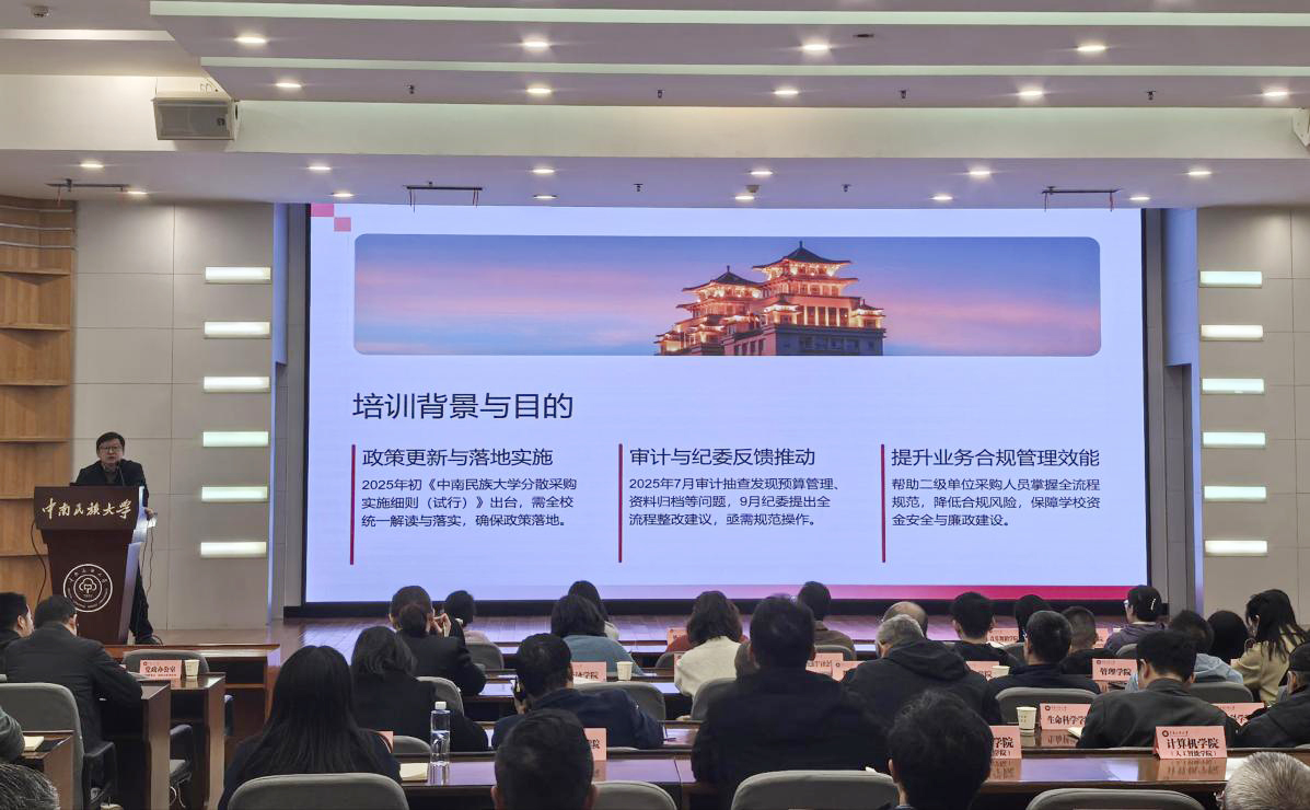 采购与招投标中心副主任王鑫作了题为《加强分散采购管理的实践与思考》的报告。他介绍了学校加强分散采购管理的目的与背景,解读了《中南民族大学分散采购实施细则(试行)》。同时,他结合今年7月初对各单位分散采购专项检查发现的主要问题,通过案例分析提出了整改建议。