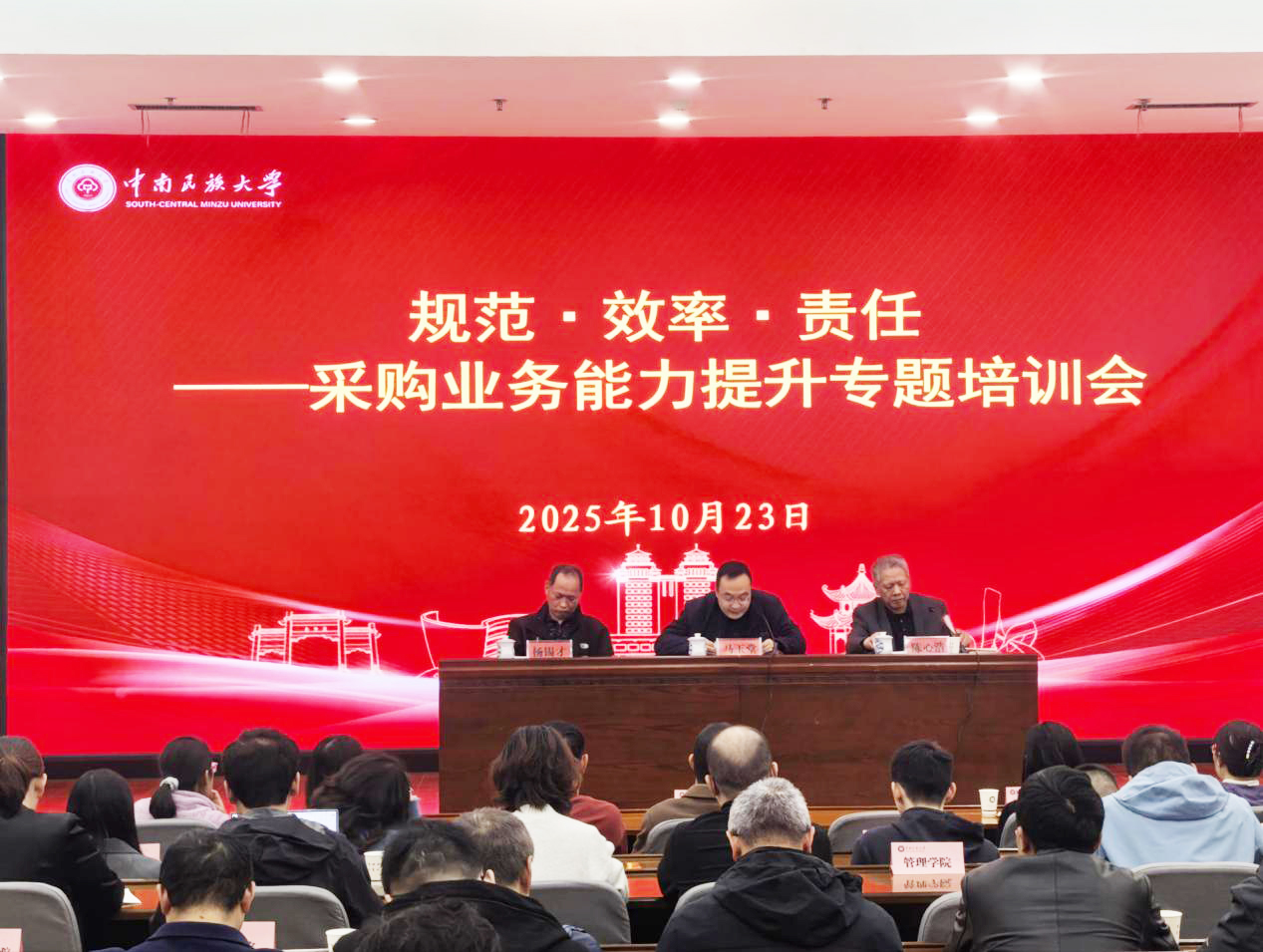 10月23日下午,学校 “规范·效率·责任”采购业务能力提升专题培训会在学术交流中心举行。校党委常委、副校长马玉堂,武汉市政府采购监督管理办公室二级调研员杨锡才出席培训会。校内各单位采购业务负责人和相关工作人员参加集中培训。会议由学校采购与招投标中心主任陈心浩主持。