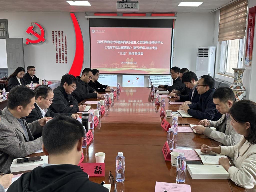 10月31日下午,马克思主义学院举行《习近平谈治国理政》第五卷学习研讨暨“三进”集体备课会,推动党的创新理论生动进课堂、扎实进头脑。校党委常委、副校长马玉堂,本科生院教务办公室主任耿亮,学院领导班子成员、各系主任及习近平新时代中国特色社会主义思想概论教研中心全体教师参加,中心主任易新涛主持会议。